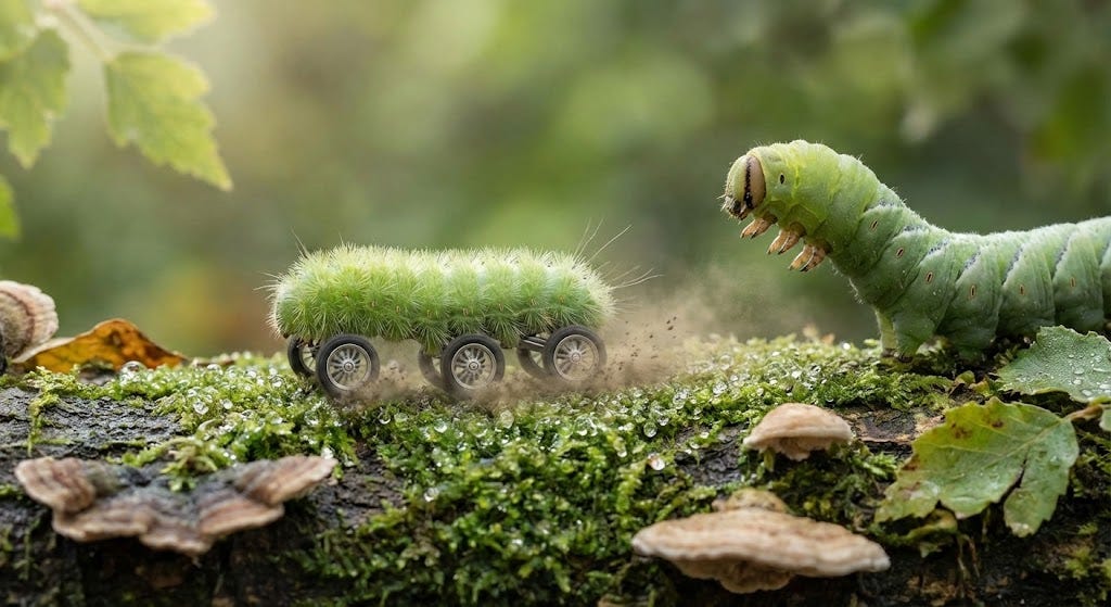 Organisations are making themselves “faster caterpillars”, as MIT Sloan’s George Westerman memorably put it. The image was too irresistible – I had to let Nano Banana Pro have its way with it.
